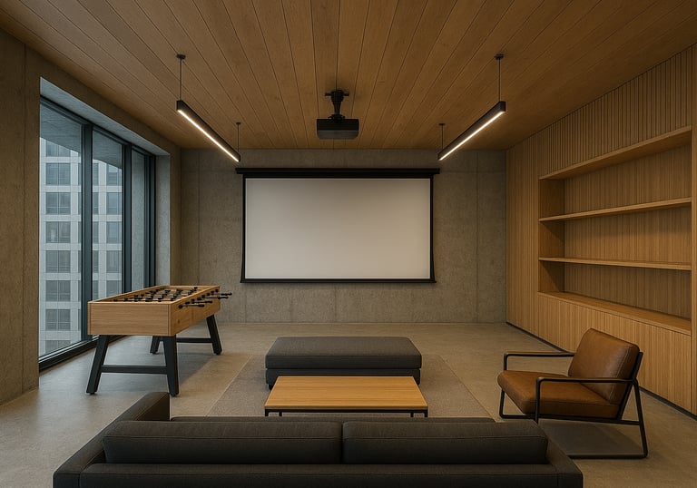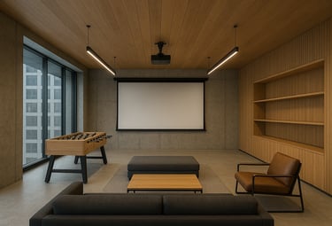 Además, creamos salas de ocio y zonas de desconexión que combinan imagen y sonido para mejorar la experiencia de los empleados y favorecer la productividad. En estos espacios instalamos proyectores, pantallas, altavoces empotrados o colgantes, y sistemas multimedia de alto rendimiento.