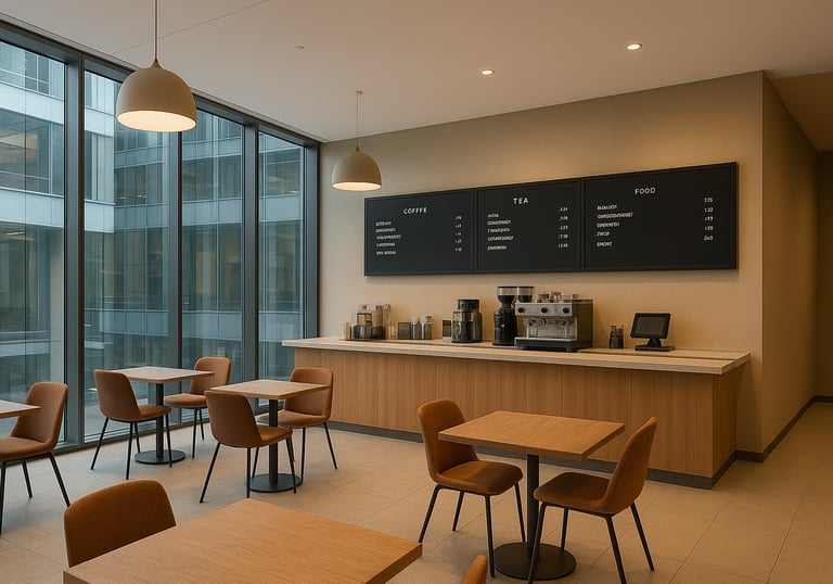 También equipamos zonas comunes — como cafeterías, halls o rooftops — con sistemas de sonido ambiental, amplificadores integrados, etapas de potencia y altavoces de techo, monitores o suspendidos, adaptando cada instalación al entorno y a la estética del espacio.