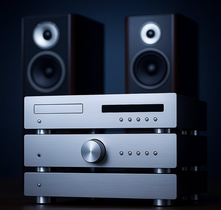 Podemos incluir tocadiscos, fuentes digitales, amplificadores integrados y altavoces de alto rendimiento, además de cables y accesorios cuidadosamente seleccionados que optimizan la pureza del sonido.